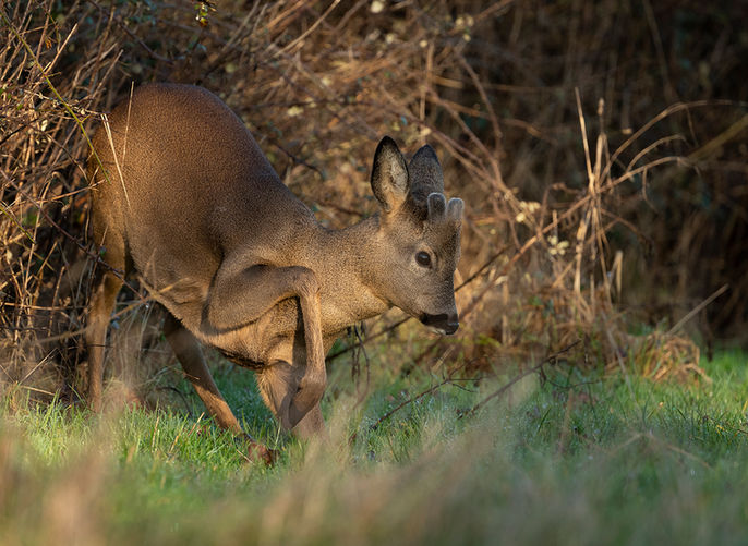 Strong, chilling winds, coupled with heavy rain, tends to make them relatively inactive. However, they still need to feed fairly frequently because roe deer don't store much in the way of body fat - in fact, never getting more than 12%. (For more detail, see the article, "The biology of roe deer", in the Deer Information section.)